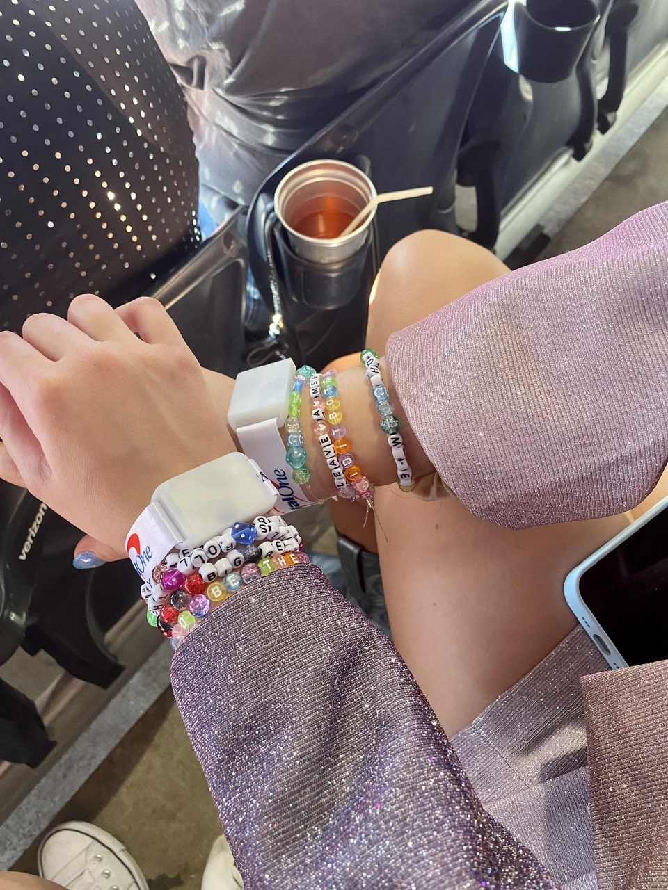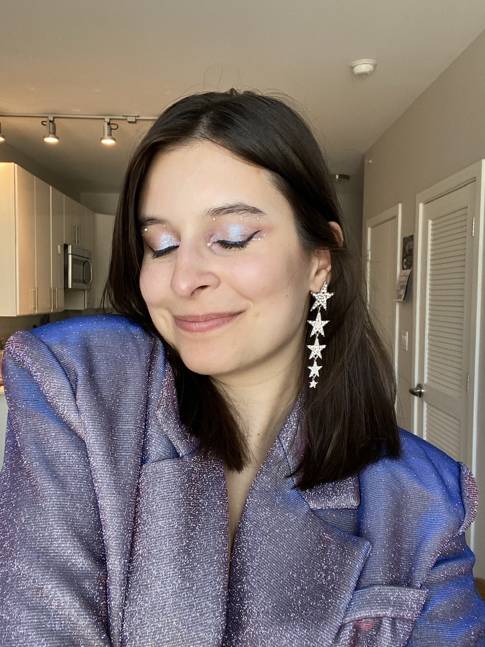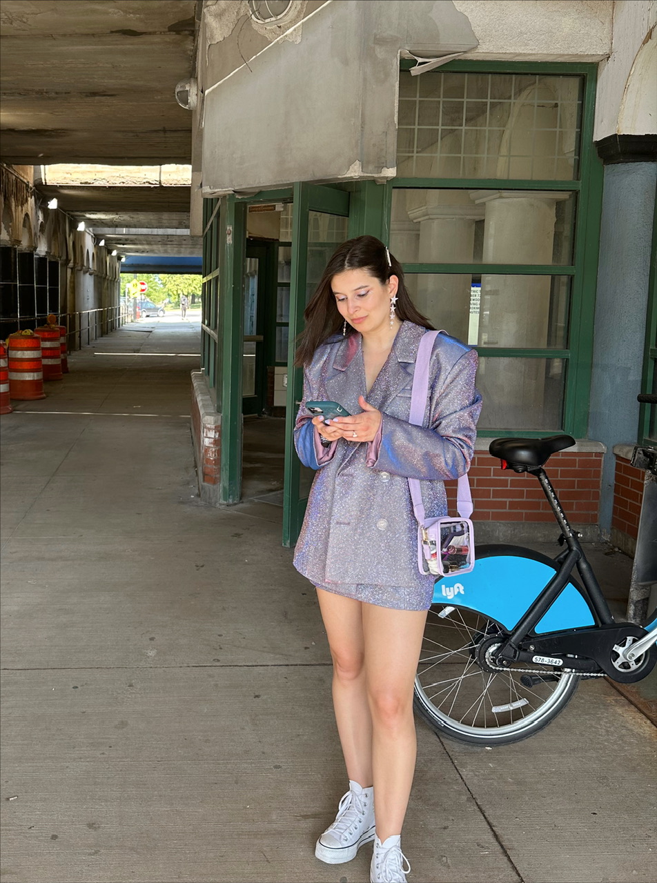 Another part of seeing Taylor Swift live that made my younger self clap with joy was the outfit and makeup I wore: a glittery, purple blazer and skirt set, paired with sparkly lavender eyeshadow and mini gemstones. I’ve always loved glitter—something about staring into the depths of anything glittery is always soothing to me for some strange reason. Almost like it gives my brain a break from my always-buzzing whir of thoughts.